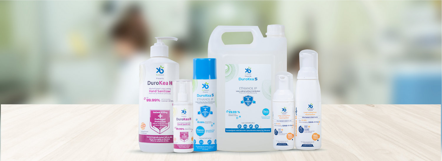 DuroKea S is a patented nano-formulation based long-lasting alcohol surface disinfectant. It is the only long-lasting (up to 35 Days) Surface Disinfectant product available in the current market which is alcohol-based. Once you apply, its alcohol component instantly (in less than 30 seconds) kill germs. Volatile alcohol evaporates and leaves nano-formulation coating on hard and soft surfaces. The release of active molecules from nano-formulation and special physicochemical properties of coated nanoparticles (positive charges) constantly kill germs within 60 seconds (in case of Corona Virus within 60 seconds) when it comes in contact with the coated surface. Moreover, after spraying of surface disinfectant on the surface, wiping is a hectic job. DuroKea S is alcohol based and does not need any wiping which saves time and labour. The fast (instant) or active killing of germs particularly Corona Virus is important as this will minimize the spreading of the virus or germs. DuroKea S is unique from the existing long-lasting surface disinfectants available in the market in terms of efficacy, price, and acceptability (see below).